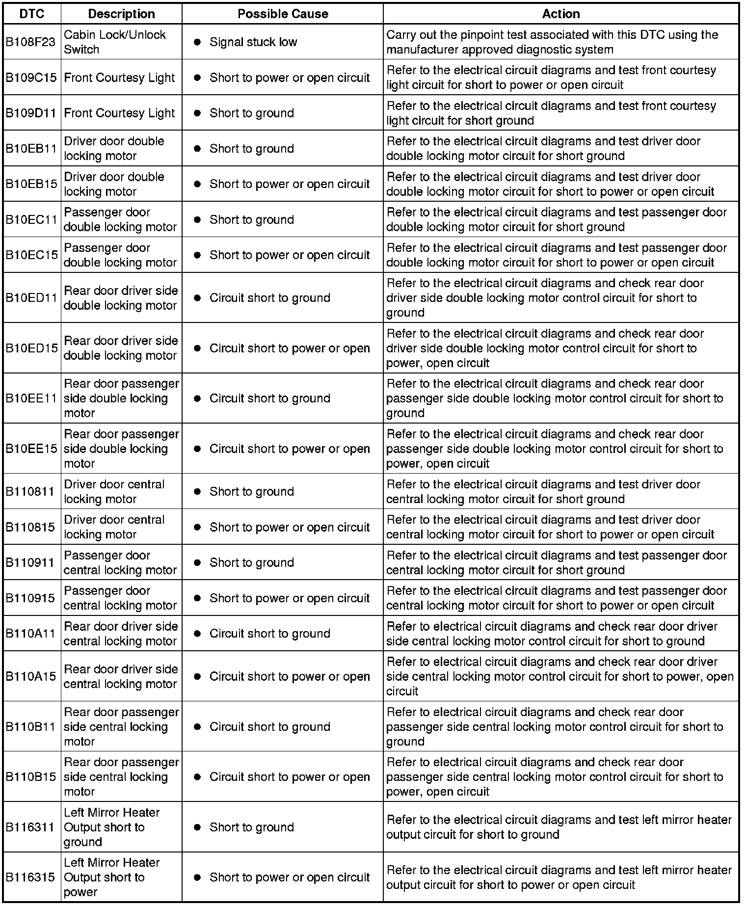 The DTC Index in this section shows information for DTCs that could be logged in the Driver Door Module (DDM) or Passenger Door Module (PDM). For diagnosis and testing information for: Driver Seat module. For additional information, refer to Seats Testing and Inspection Information and Entertainment module. For additional information, refer to Information and Entertainment System