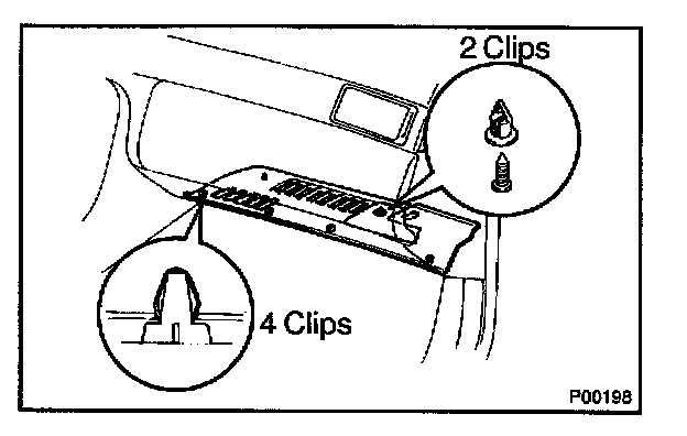 a. Remove the 2 clips, and pull out the instrument panel under cover.