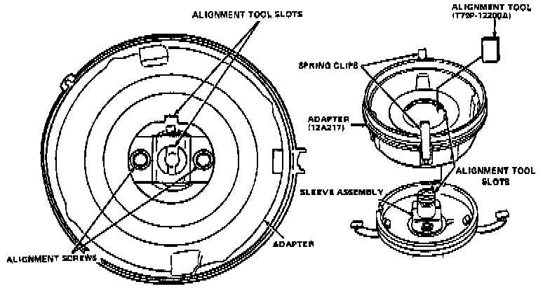- Loosen two sleeve assembly adjustment screws and insert alignment tool into slots in sleeve assembly and adapter.