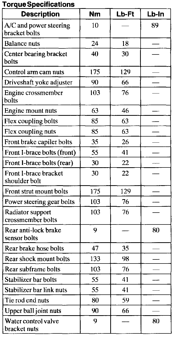 Torque Specifications: