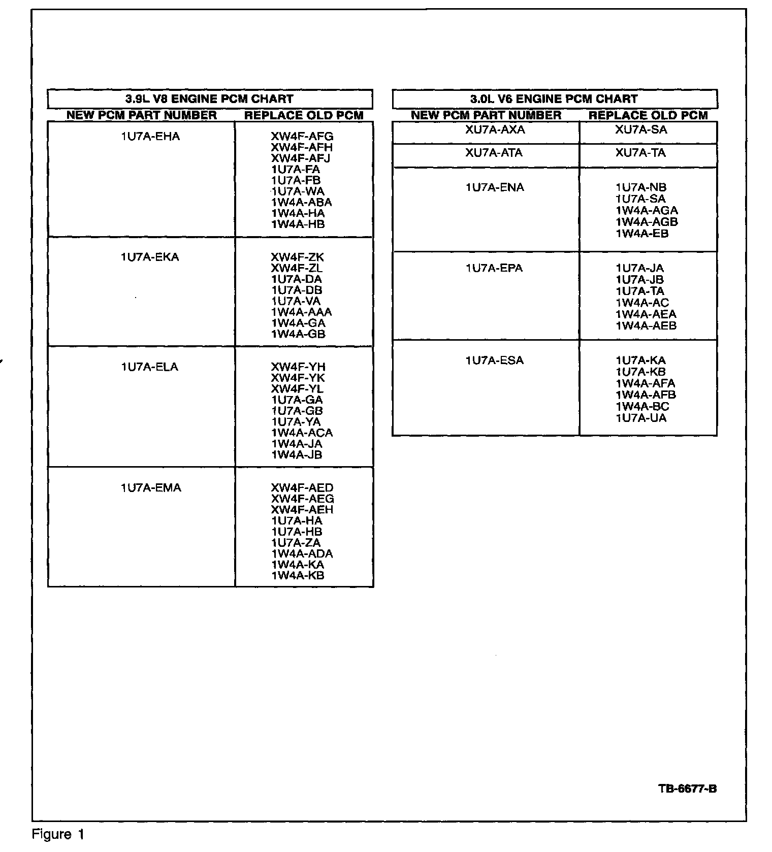2. Check if the PCM part number is listed in the chart found in Figure 1.