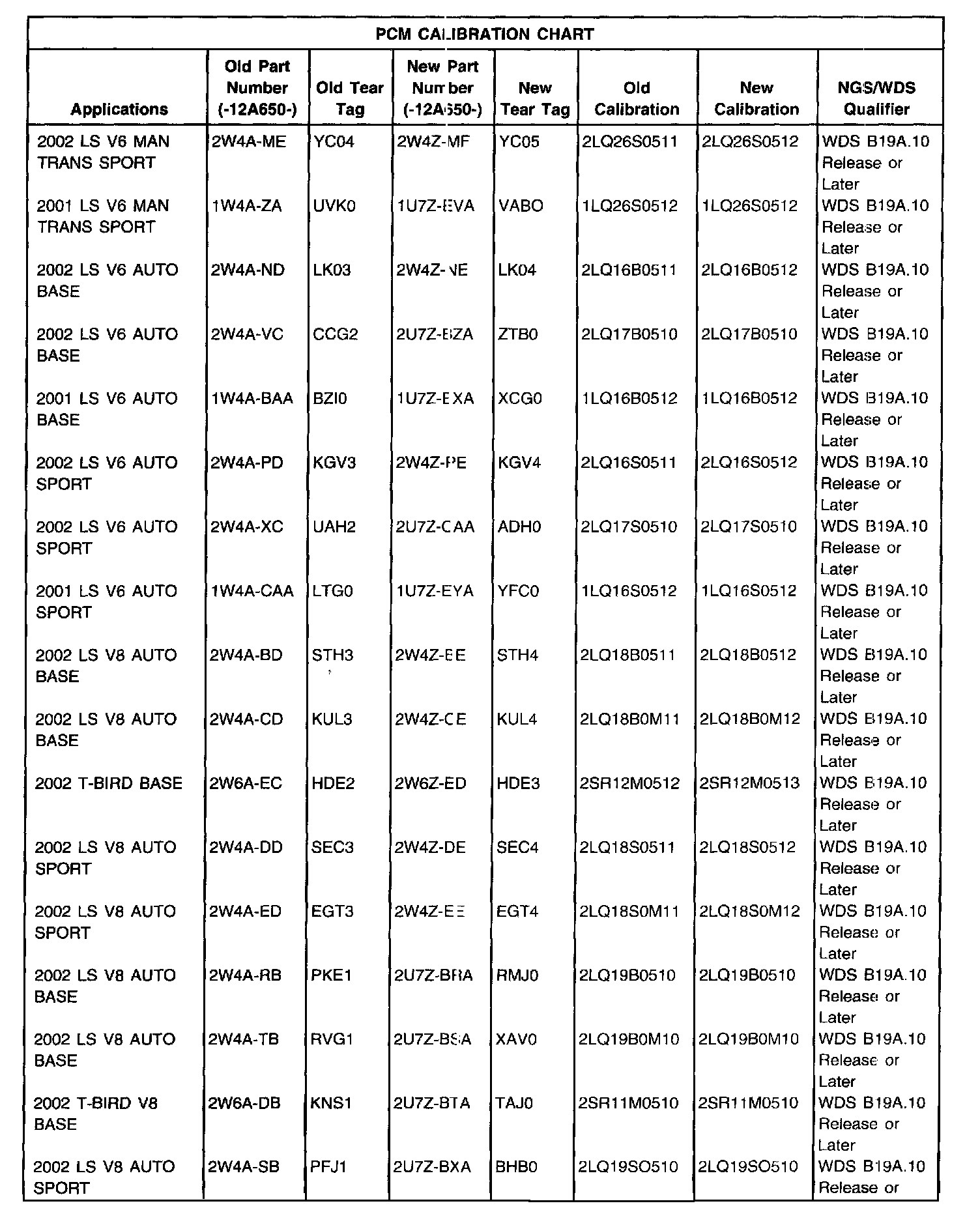 3. All 2000 and some 2001 model year vehicles will have a PCM included in the list. If the PCM part IS included in the list, refer to either "V6 Vehicles Requiring a New PCM" or "V8 Vehicles Requiring a New PCM" for the repair procedure.