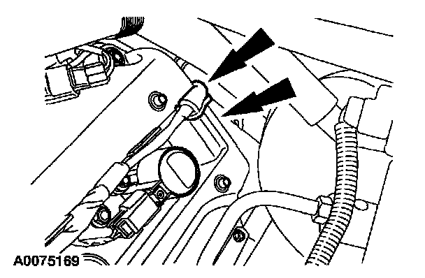 NOTE: When removing the LH side ignition coil cover bolts, the evaporative emission canister purge valve must be positioned aside as follows.