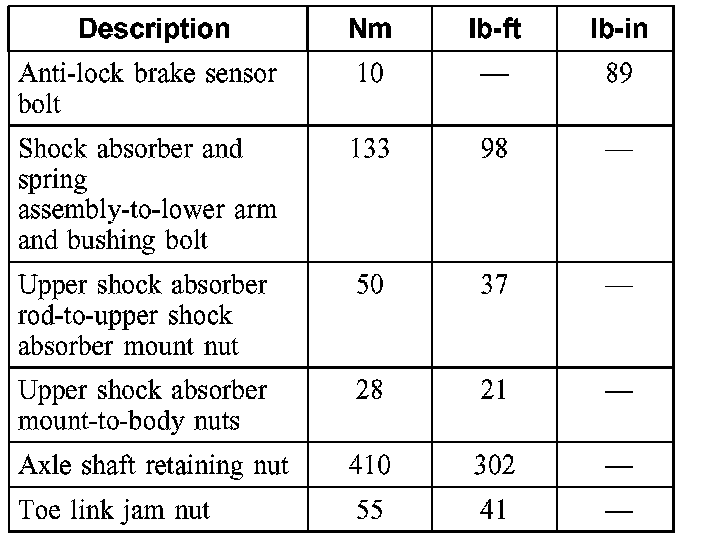 Torque Specifications