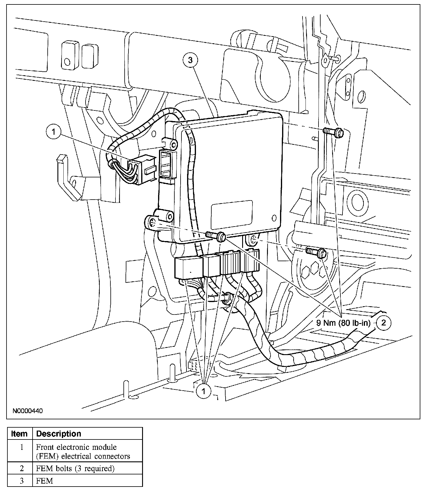 8. NOTE: Once the FEM is installed, it is necessary to download the module configuration information from the diagnostic tool into the new module. Refer to Information Bus (Module Communications Network).