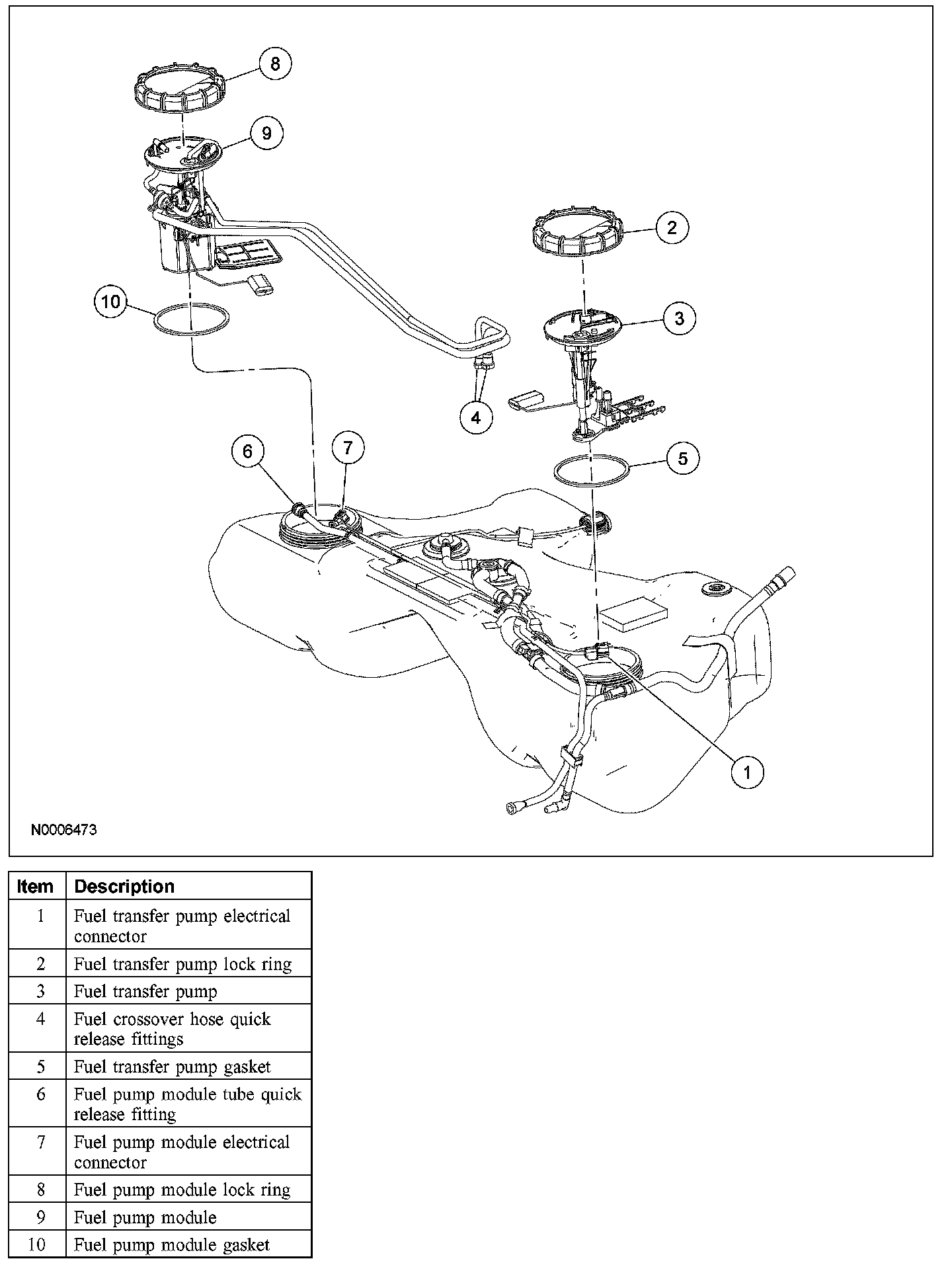 1. NOTE: Install the fuel pump module and crossover tubes as an assembly.