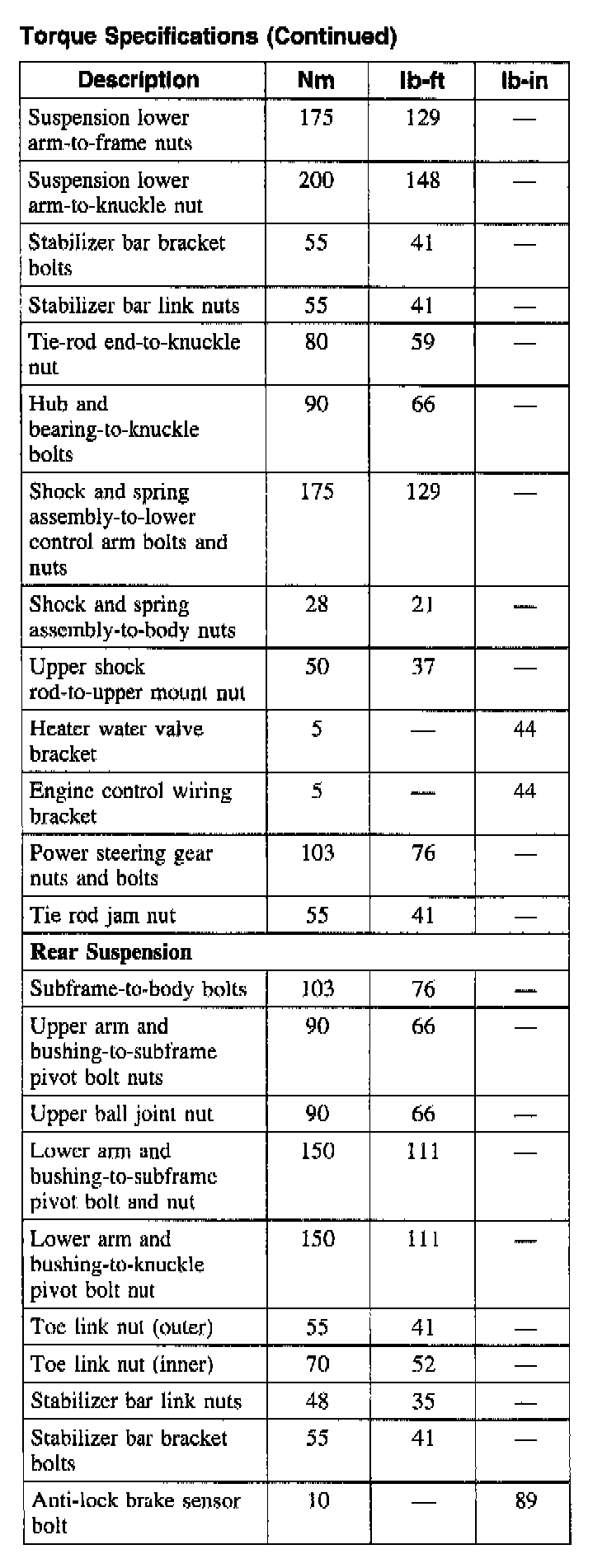 Miscellaneous Specifications