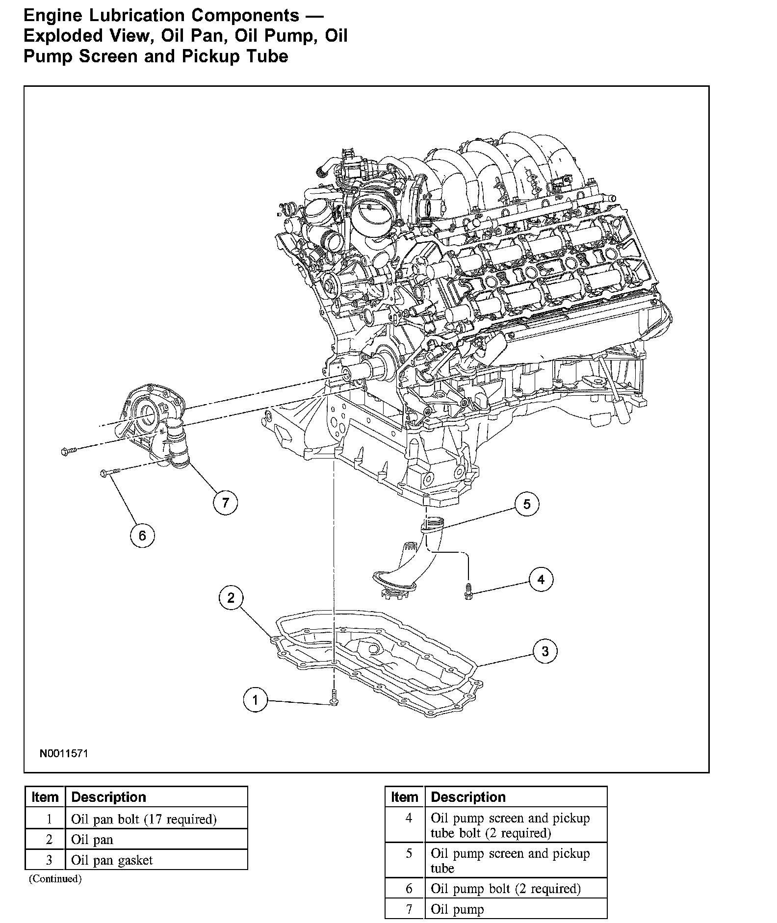 Engine Lubrication Components - Exploded View, Oil Pan, Oil Pump, Oil Pump Screen and Pickup Tube: