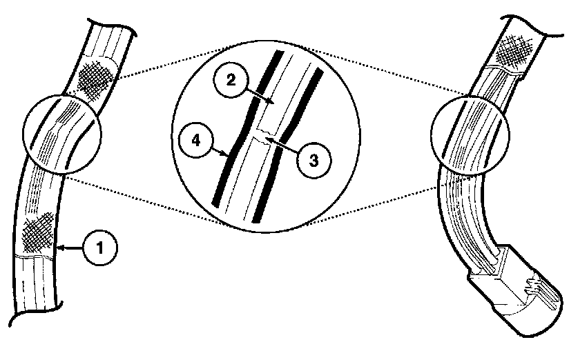 The illustrations are known examples of wiring harness, splices and connectors that will create intermittent electrical concerns. The concerns are hidden and can only be discovered by a physical evaluation as shown in each illustration.