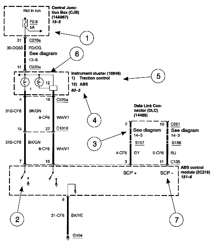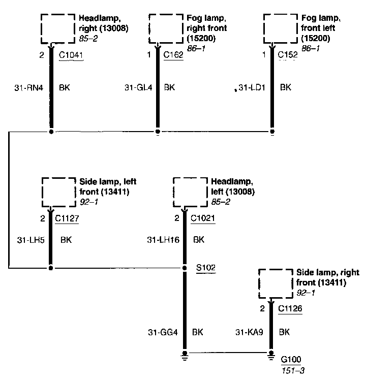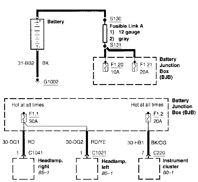Each set normally starts with the component that powers the circuit, such as a fuse or the ignition switch. Current flow is shown from the power source at the top of the diagram to ground at the bottom of the diagram. A full representation of the power supply of a fuse or the power distribution from a fuse to various components is given in the Power and Ground Distribution Diagrams. Full representation of the ground connections are shown in the Power and Ground Distribution Diagrams.