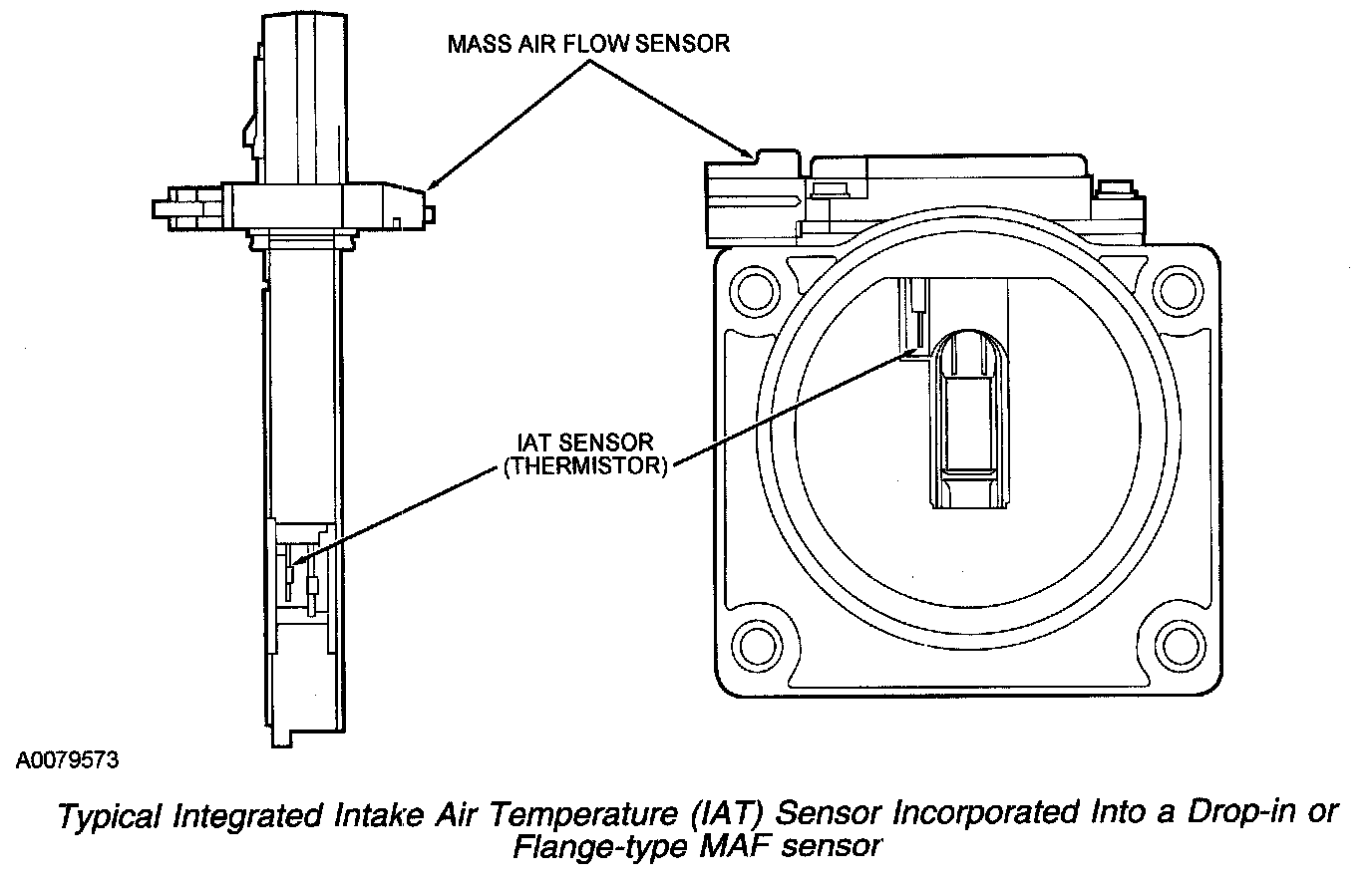 Typical Integrated Intake Air Temperature (IAT) Sensor Incorporated Into A Drop-in Or Flange-type MAF Sensor: