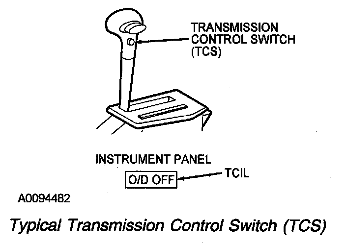 The TCS signals the PCM with VPWR whenever the TCS is pressed. On vehicles with this feature, the transmission control indicator lamp (TCIL) illuminates when the TCS is cycled to disengage overdrive.