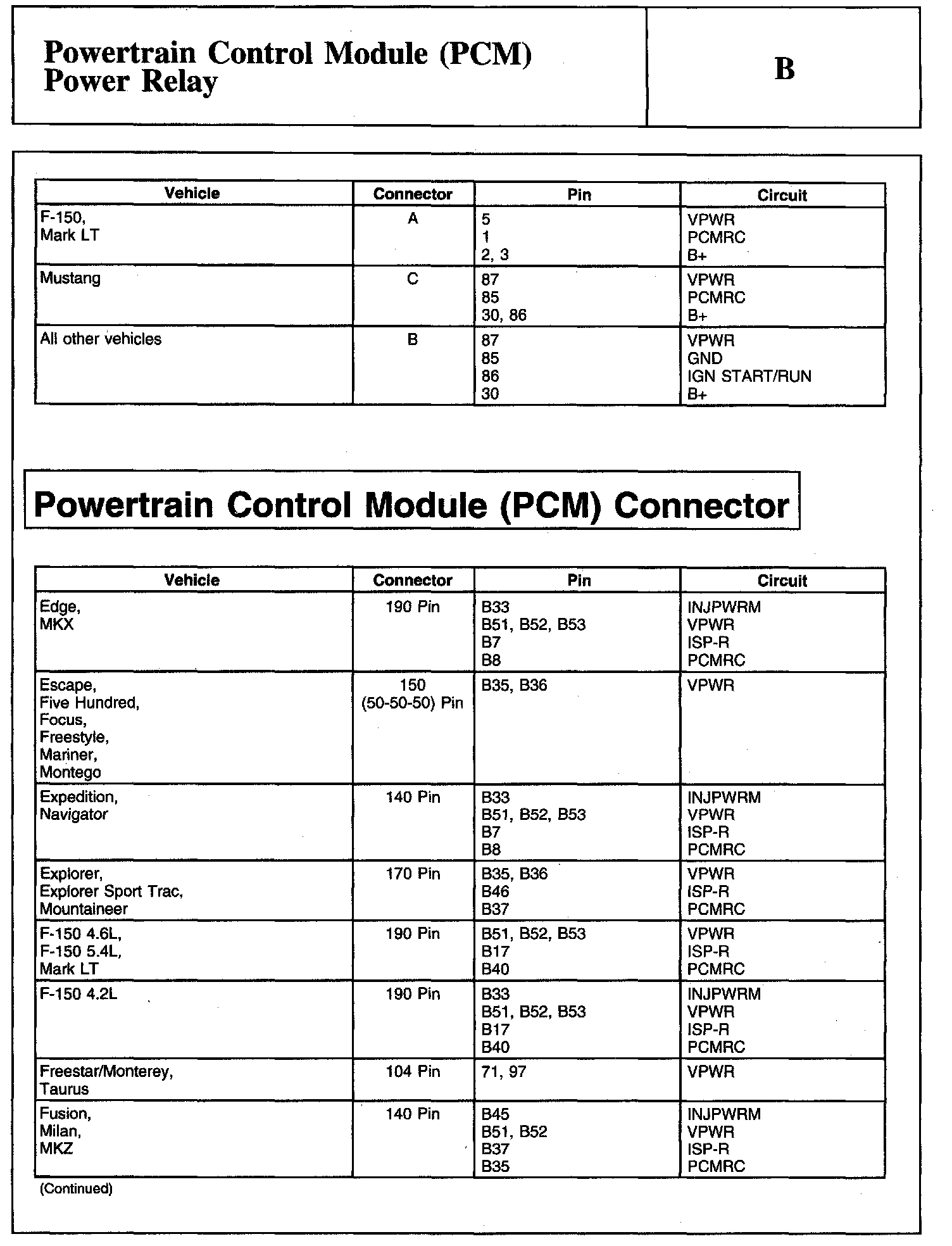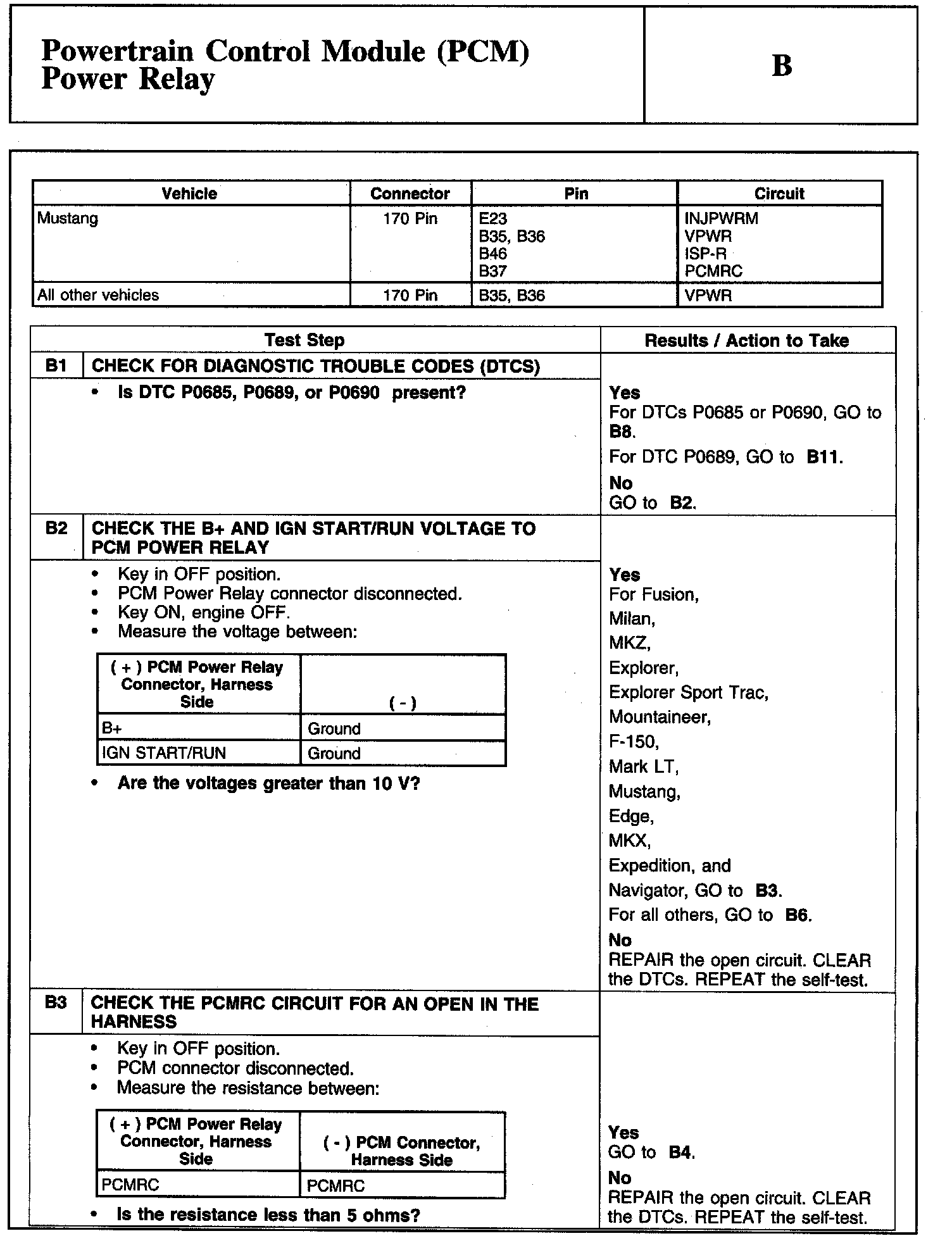 Home >> Lincoln >> 2007 >> MKX FWD V6-3.5L >> Repair and Diagnosis >> Powertrain Management >> Computers and Control Systems >> Testing and Inspection >> Pinpoint Tests >> Test B: Powertrain Control Module (PCM) Power Relay