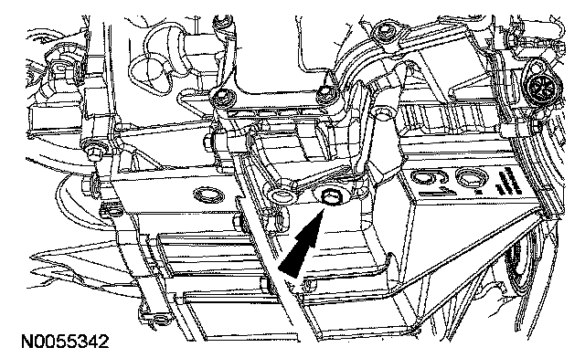 7. Remove the transmission fluid drain plug and allow the transmission fluid to drain.