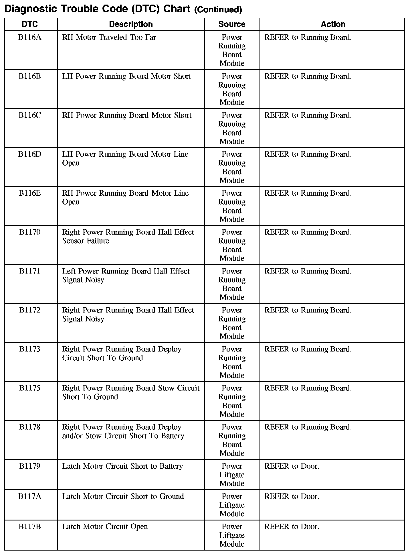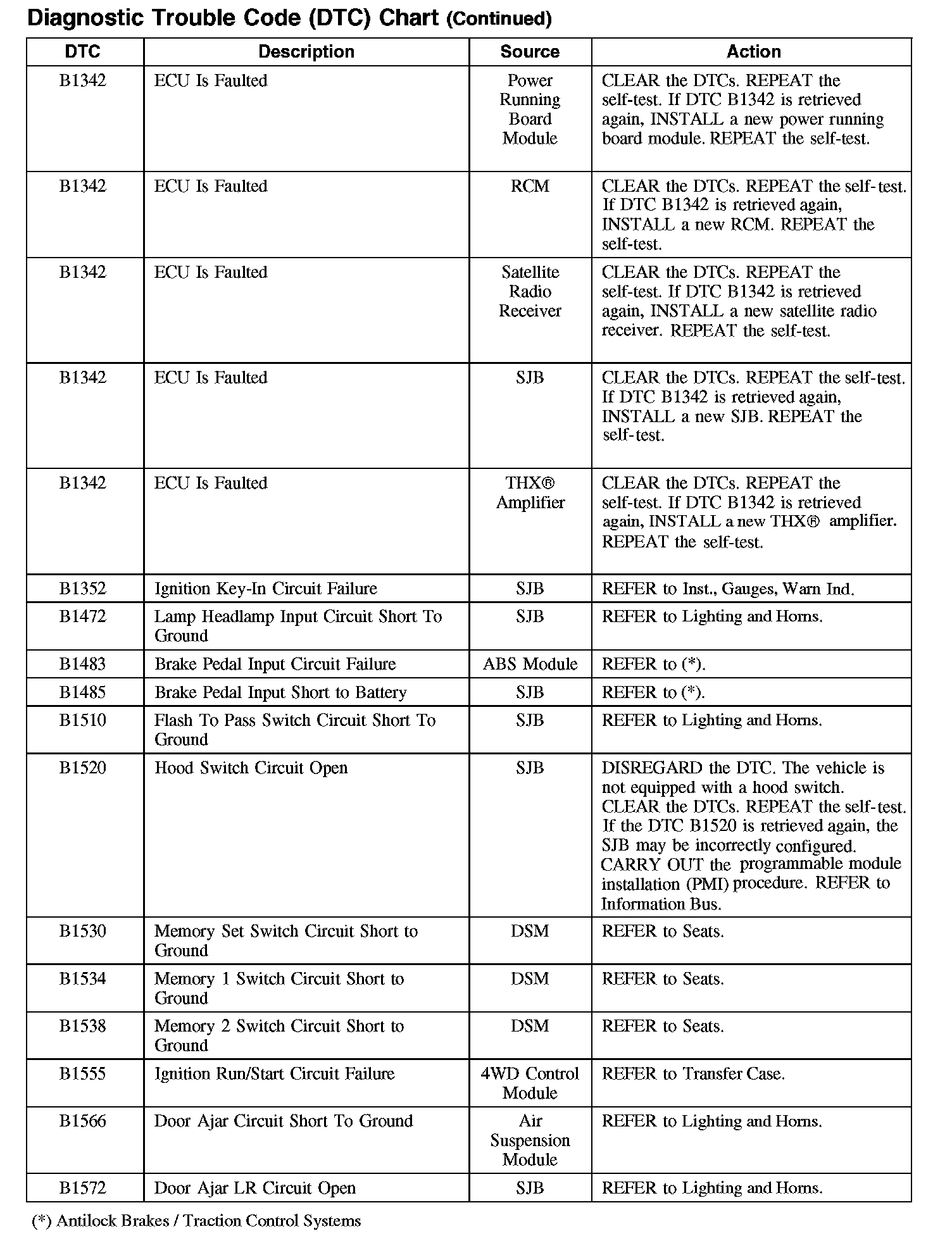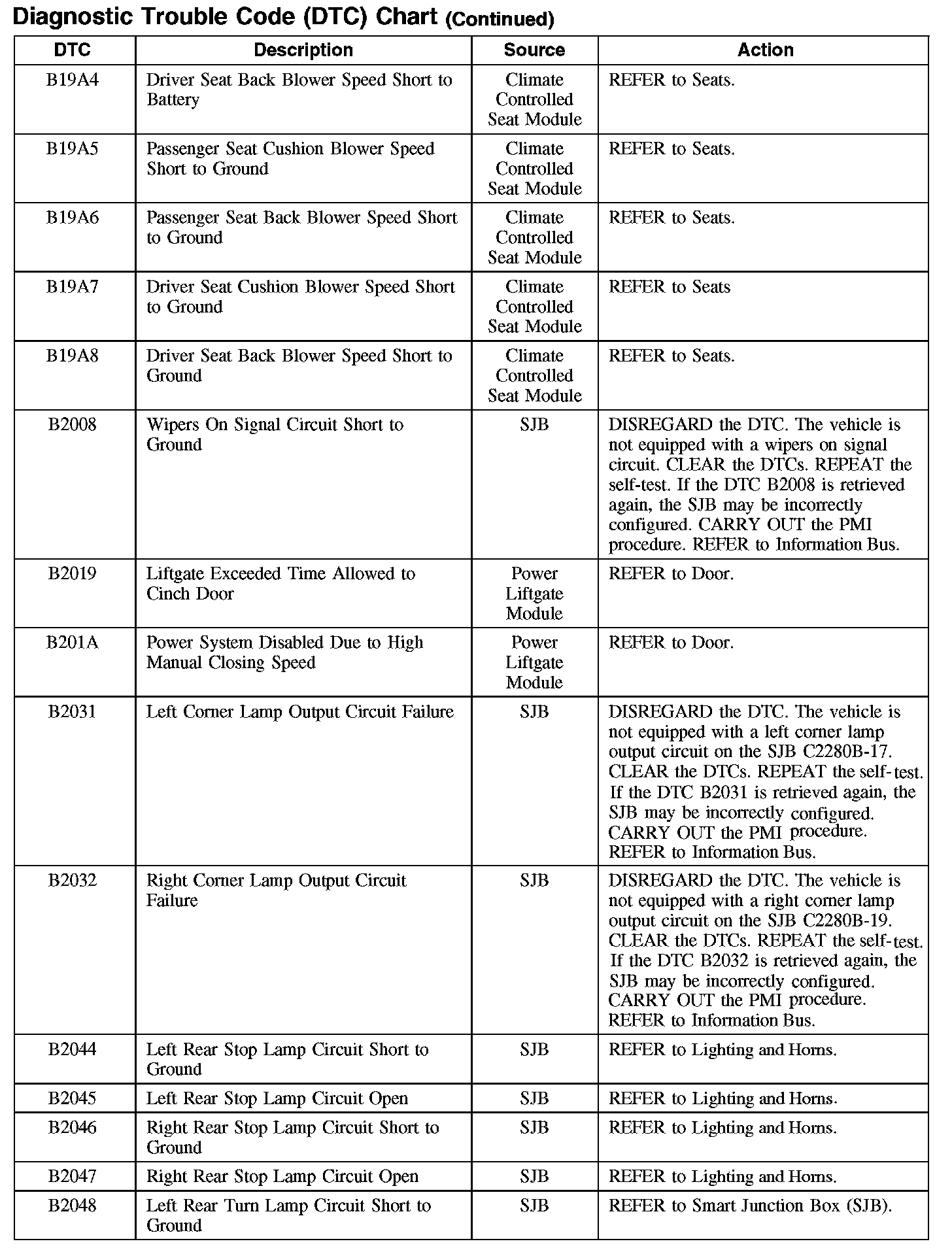 DIAGNOSTIC TROUBLE CODE (DTC) CHARTB1003-B106F: