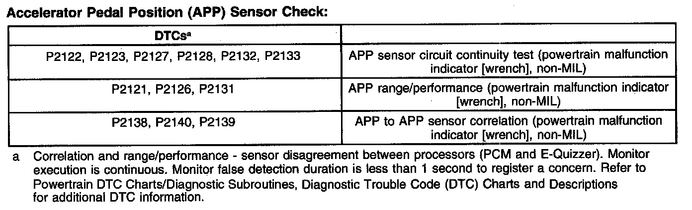 4. The 3 pedal position signals make sure the PCM receives a correct input even if 1 signal has a concern. The PCM determines if a signal is incorrect by calculating where it should be, inferred from the other signals. A value is substituted for an incorrect signal if 2 of the 3 signals are incorrect.