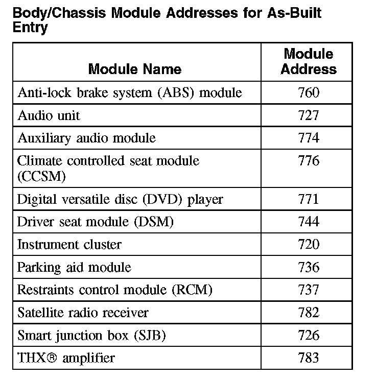 As-Built data is a VIN specific module configuration record. During vehicle build, the configuration from all modules is downloaded and stored in the As-Built database. As Built data will not reflect customer preference items that have been changed from the default state. These items will need to be changed using programmable parameters after the module is configured.