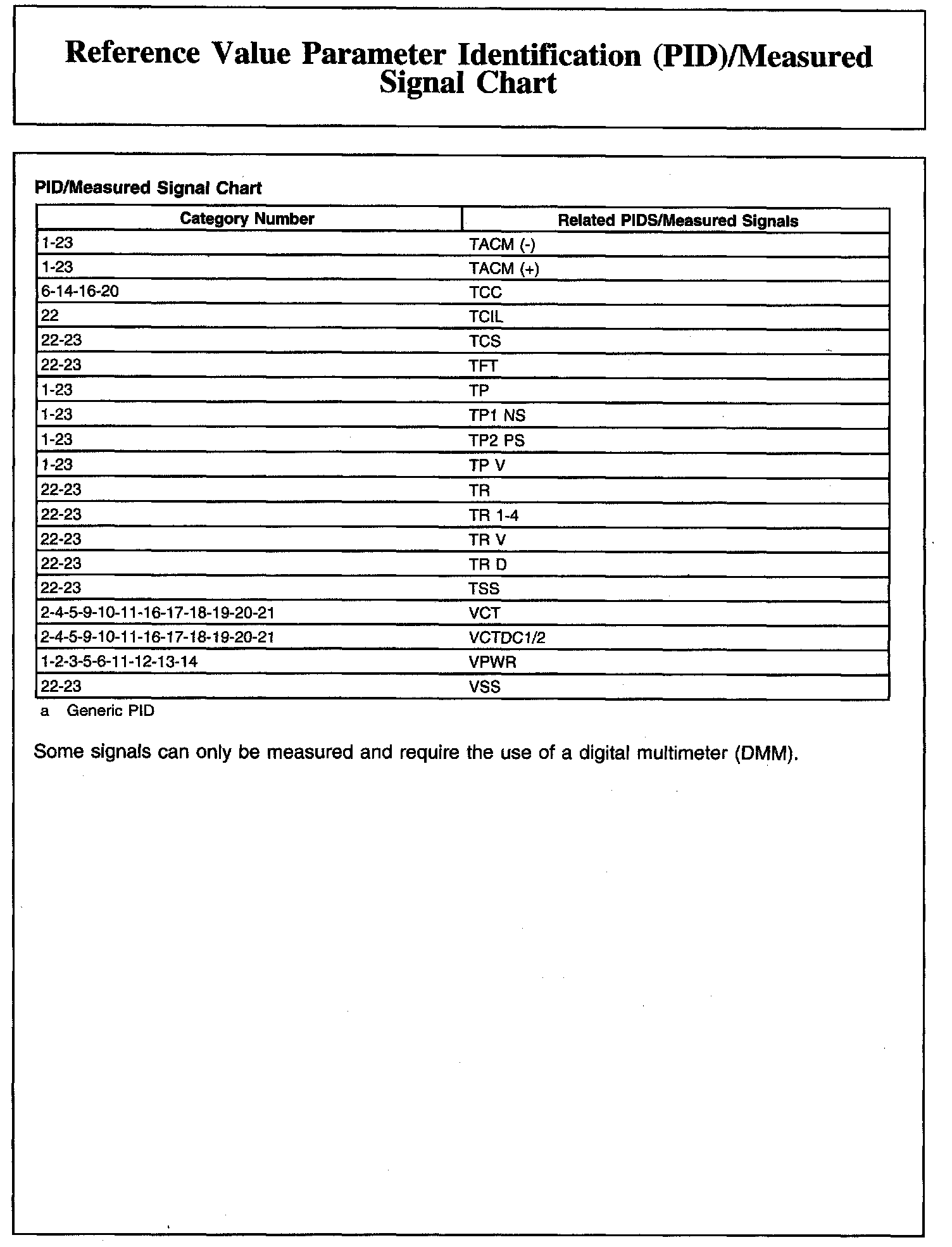 Reference Value Parameter Identification (PID)/Measured Signal Chart (Part 1):