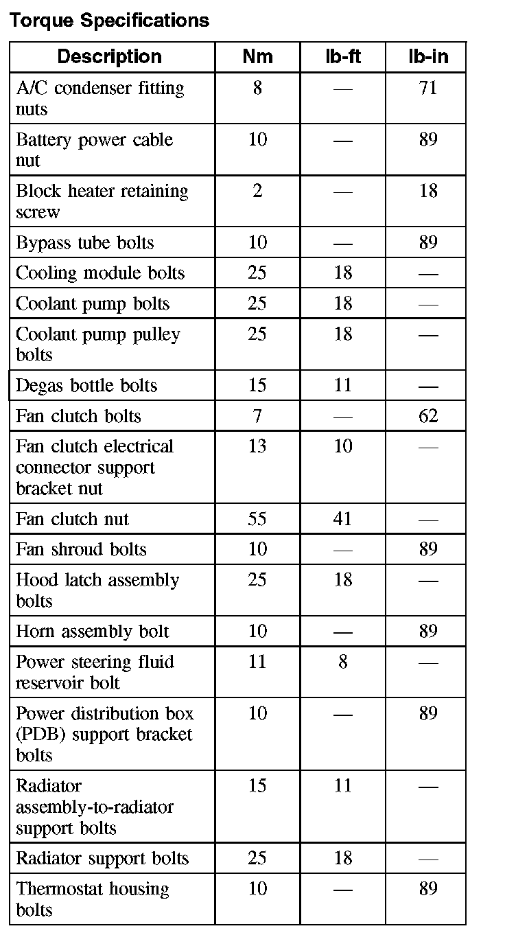 Torque Specifications: