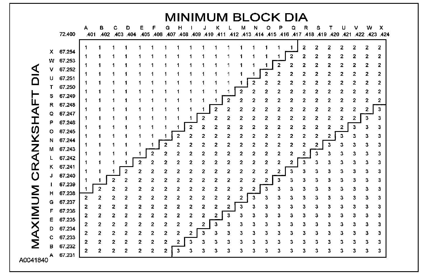 Main Bearing Size Codes