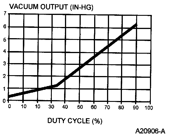 The EGR vacuum regulator solenoid is an electromagnetic device used to regulate the vacuum supply to the EGR valve. The solenoid contains a coil which magnetically controls the position of a disc to regulate the vacuum. As the duty cycle to the coil increases, the vacuum signal passed through the solenoid to the EGR valve also increases. Vacuum not directed to the EGR valve is vented through the solenoid vent to atmosphere. Note that at 0% duty cycle (no electrical signal applied), the EGR vacuum regulator solenoid allows some vacuum to pass, but not enough to open the EGR valve.