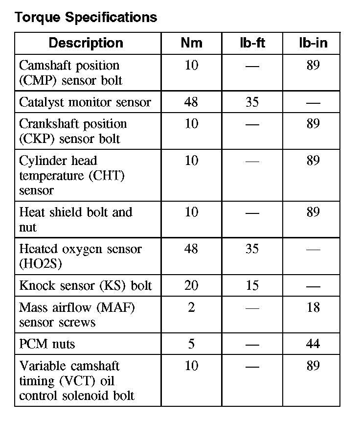 Torque Specifications:
