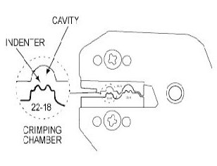 6. Center one end of the wire splice in the appropriate crimping chamber.