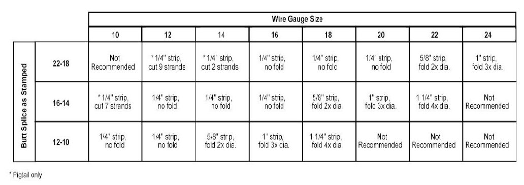 Recommended splicing method - Crimp (For 10-22 AWG Diameter Wire to Like Wire Diameter)
