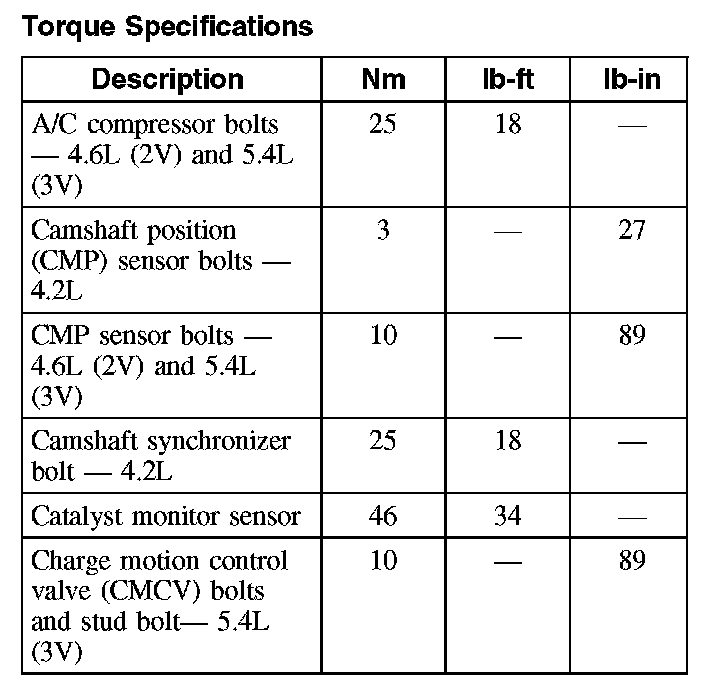 Torque Specifications (Part 1):
