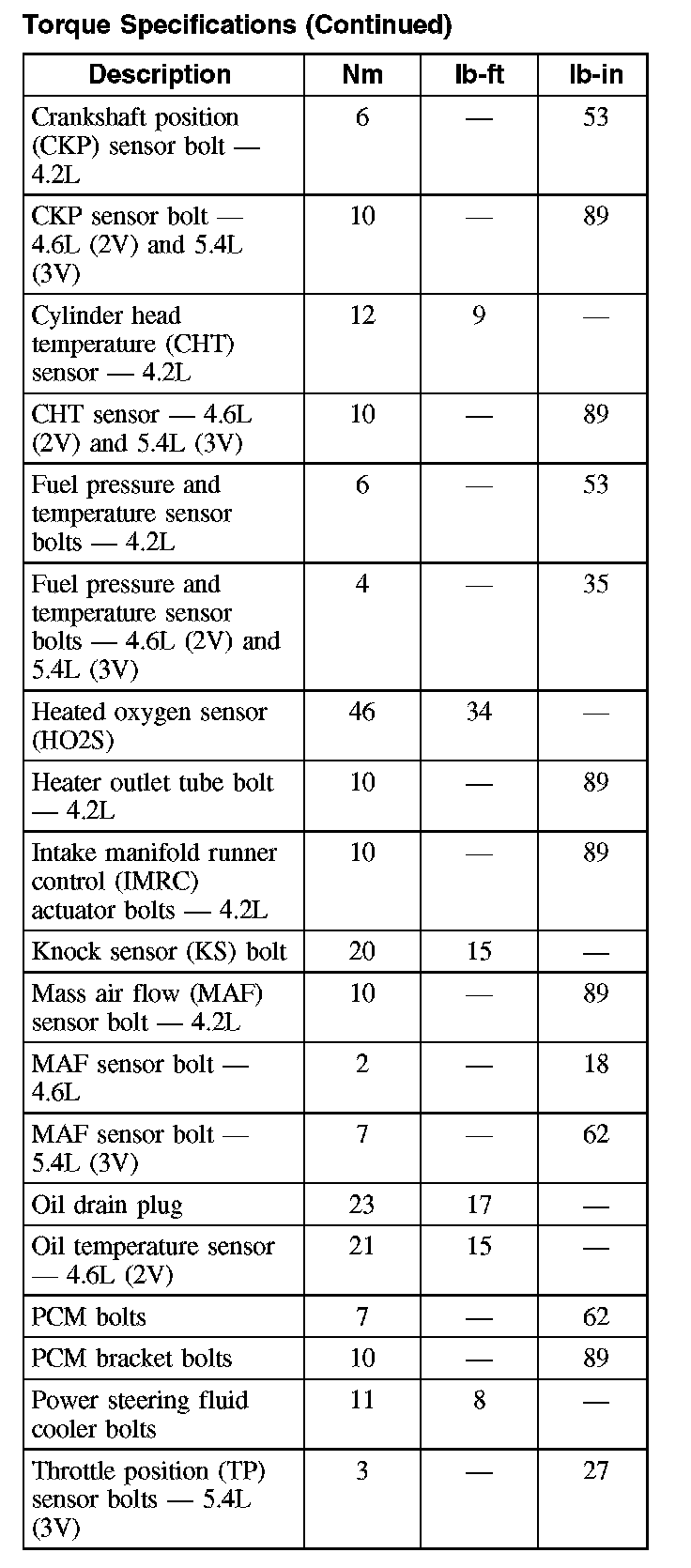 Torque Specifications (Part 2):