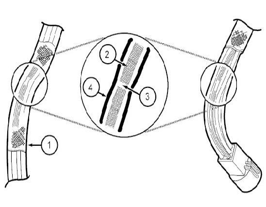 13. Use shielded heat gun to heat the repaired area until adhesive flows out of both ends of the heat shrink tubing.