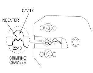 6. Center one end of the wire splice in the appropriate crimping chamber.