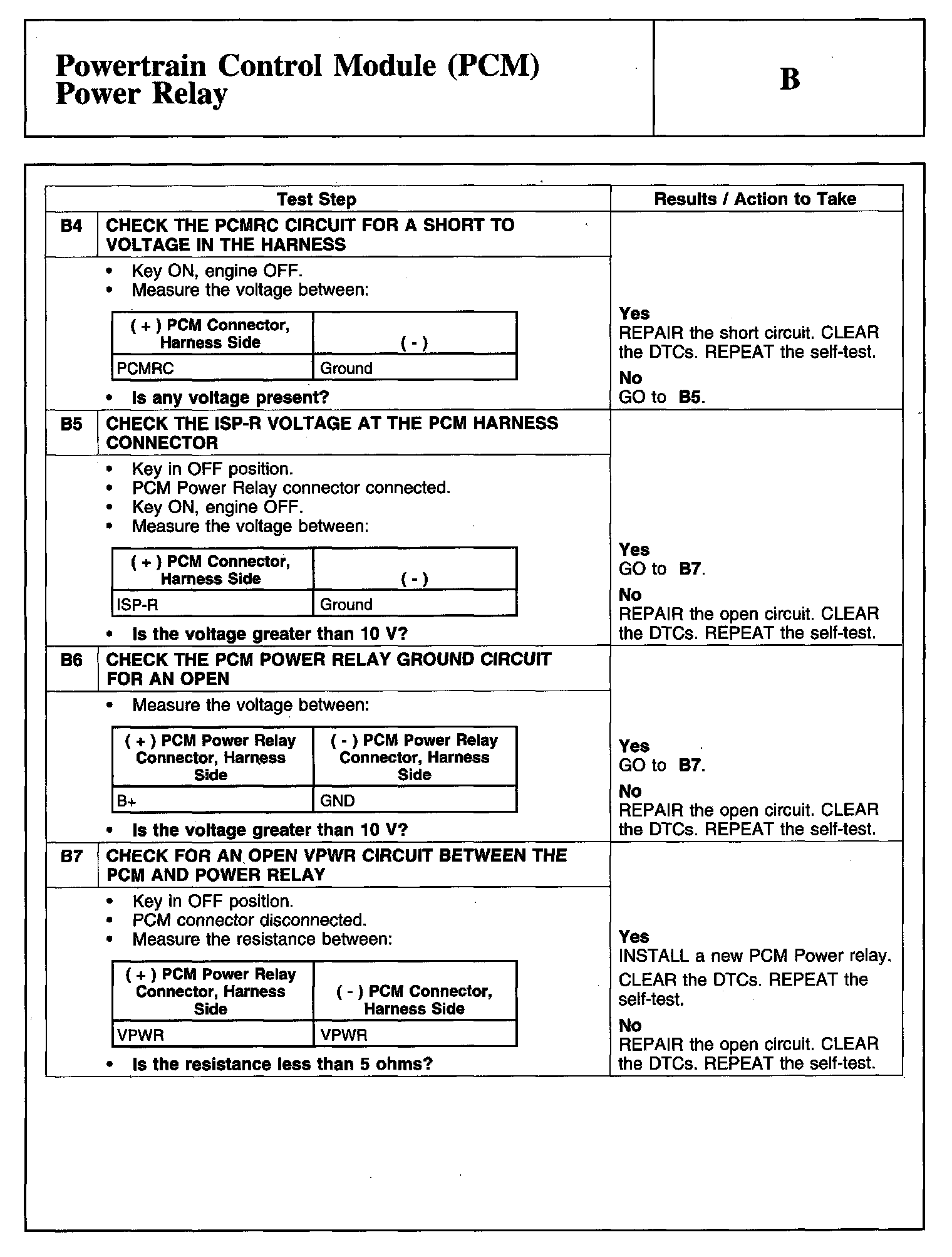Test B: Powertrain Control Module (PCM) Power Relay