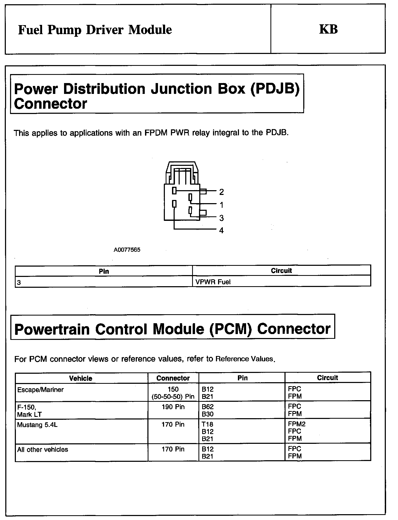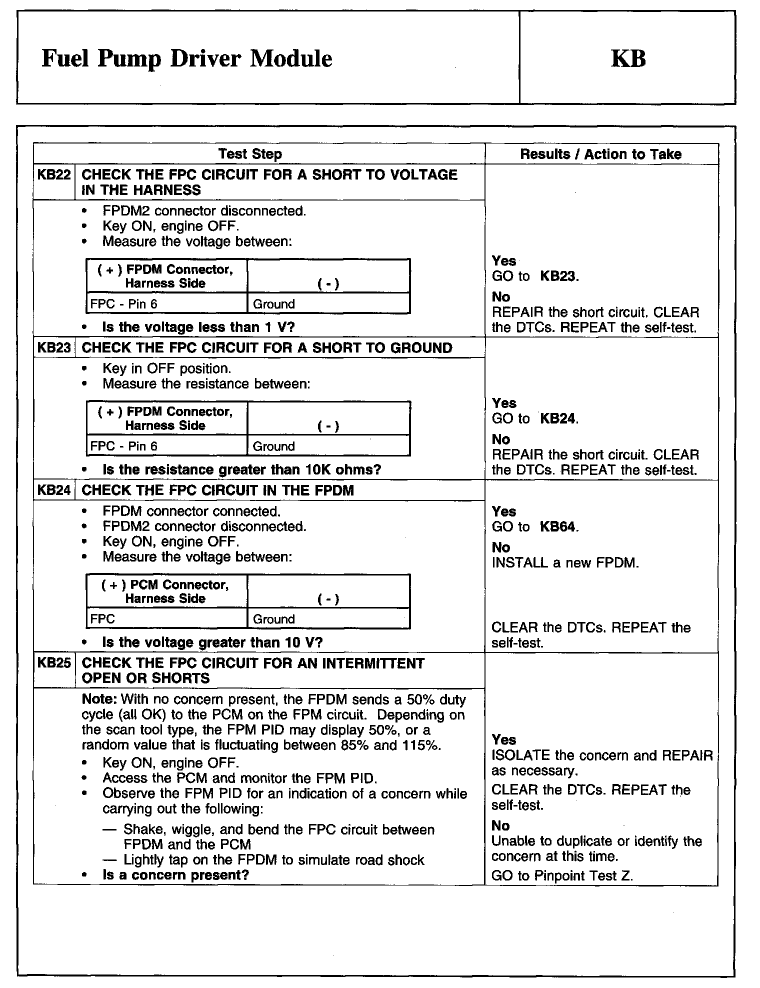 PINPOINT TEST KB: FUEL PUMP DRIVER MODULE