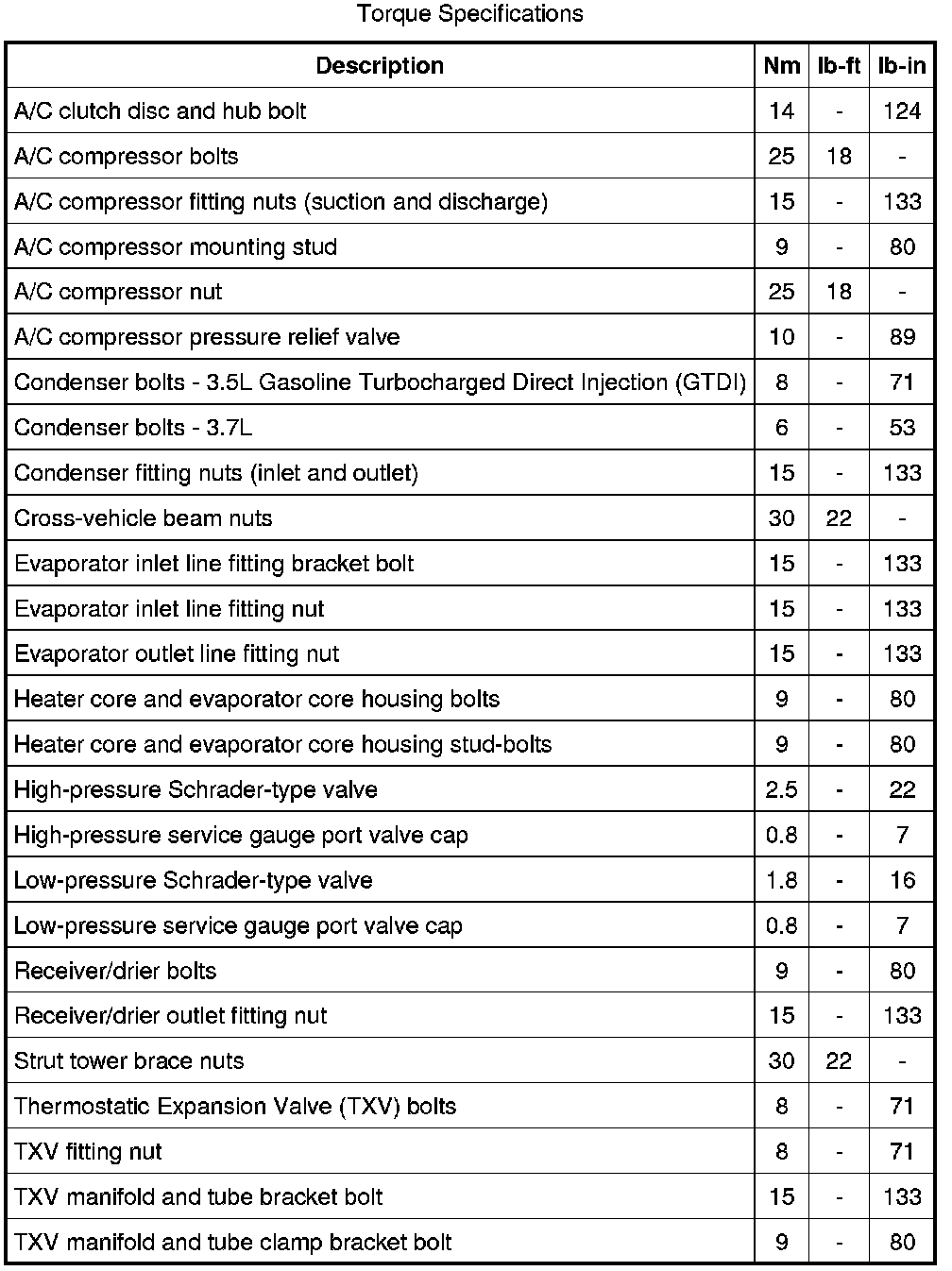 Torque Specifications