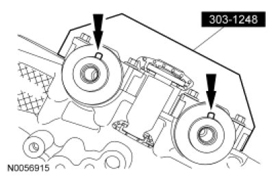 Rotate the RH camshafts to the top dead center position and install the Camshaft Holding Tool on the flats of the camshafts.