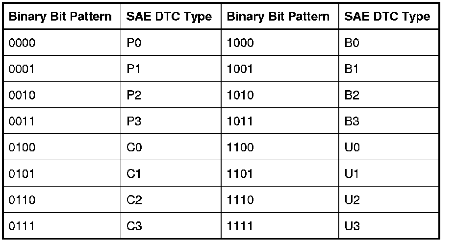 A list of failure type bytes is defined by SAE J2012 but is not described here because the PCM does not use the failure type byte.