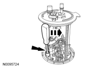 6. NOTICE: Carefully remove the Fuel Pump (FP) assembly to avoid damaging the fuel level sensor.
