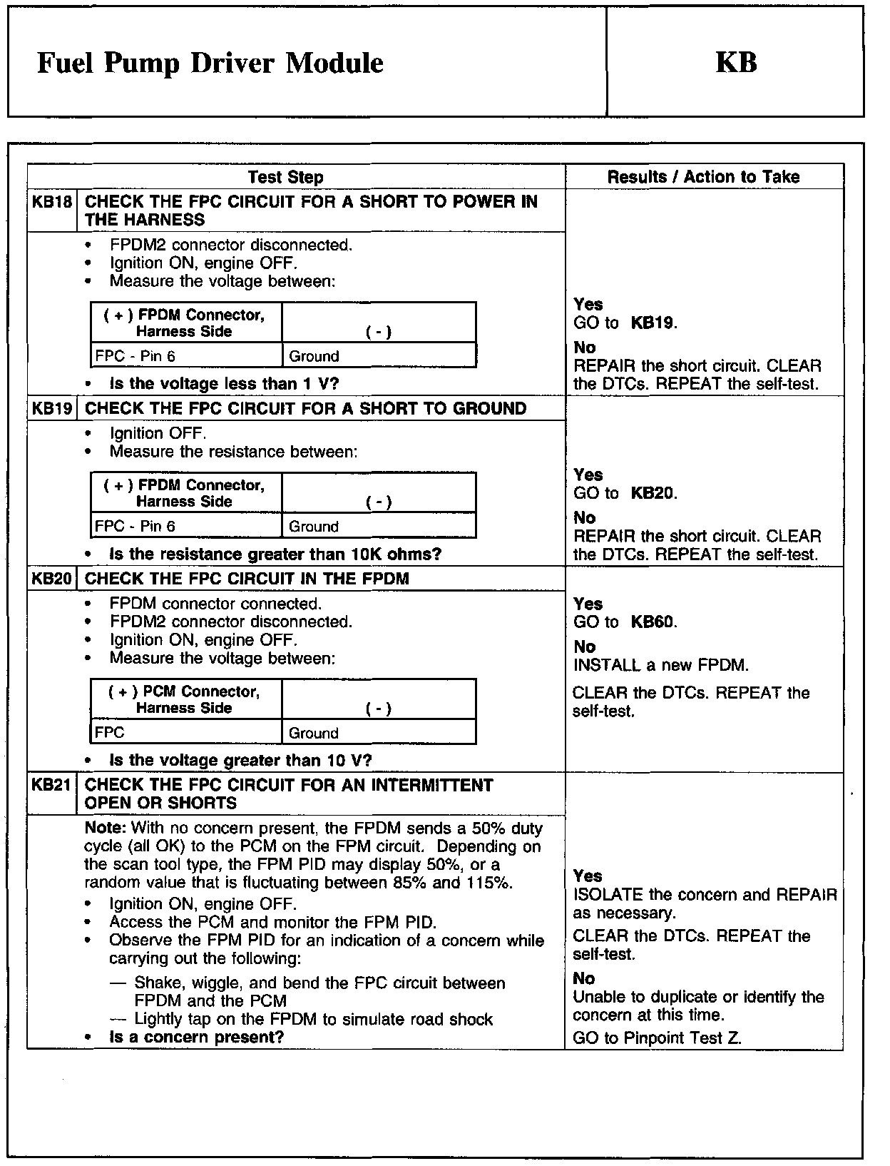 PINPOINT TEST KB: FUEL PUMP DRIVER MODULE