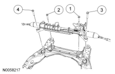 11. NOTE: The steering gear is not removed with the front subframe and must be positioned aside. Position the steering gear aside using mechanic's wire.