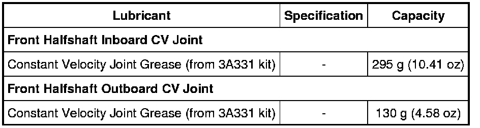 Lubricants and Capacities
