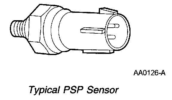 The PSP sensor monitors the hydraulic pressure within the power steering system. The PSP sensor voltage input to the PCM changes as the hydraulic pressure changes. The PCM uses the input signal from the PSP sensor to compensate for additional loads on the engine by adjusting the idle RPM and preventing engine stall during parking maneuvers. Also, the PSP sensor signals the PCM to adjust the transmission EPC pressure during increased engine load, such as during parking maneuvers.