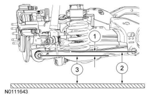 3. Subtract measurement 3 from measurement 2 to obtain the rear ride height.