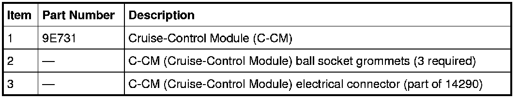 2. NOTE: If a plastic grommet breaks while the C-CM (Cruise-Control Module) is being installed, a new grommet should be installed.
