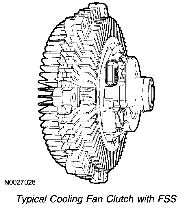 The cooling fan clutch actuator valve controls the fluid flow from the reservoir into the working chamber. Once viscous fluid is in the working chamber, shearing of the fluid results in fan rotation. The cooling fan clutch actuator valve is activated with a pulse width modulated (PWM) output signal from the PCM. By opening and closing the fluid port valve, the PCM can control the cooling fan speed. The cooling fan speed is measured by a Hall effect sensor and is monitored by the PCM during closed loop operation.
