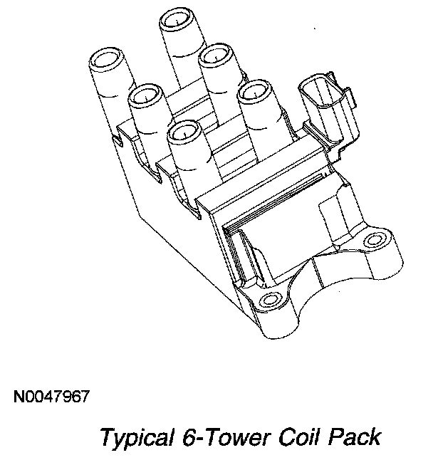When the coil is fired by the PCM, spark is delivered through the matched pair towers to their respective spark plugs. The spark plugs are fired simultaneously and are paired so that as one fires on the compression stroke, the other spark plug fires on the exhaust stroke. The next time the coil is fired, the situation is reversed. The next pair of spark plugs fire according to the engine firing order.