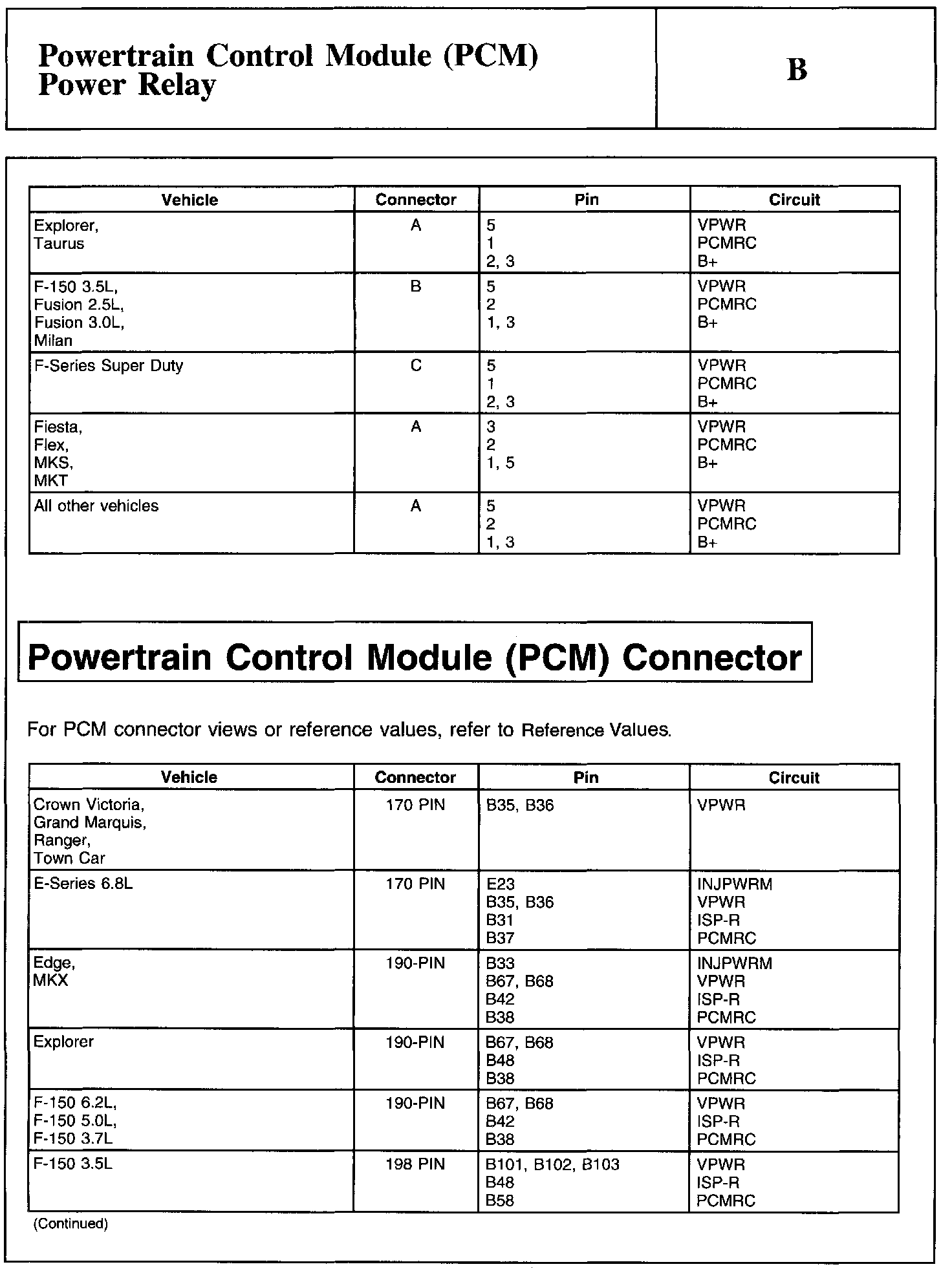 Home >> Lincoln >> 2011 >> Navigator 2WD V8-5.4L >> Repair and Diagnosis >> Powertrain Management >> Computers and Control Systems >> Testing and Inspection >> Pinpoint Tests >> Test B: Powertrain Control Module (PCM) Power Relay