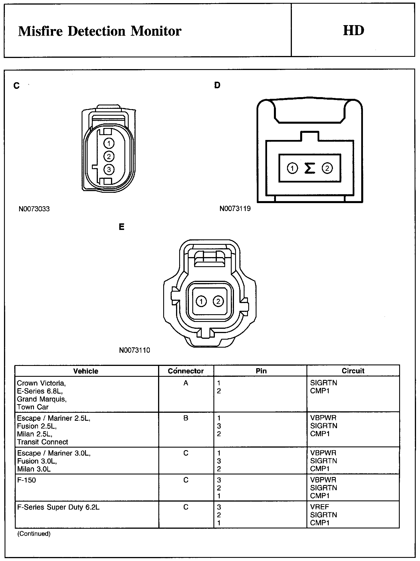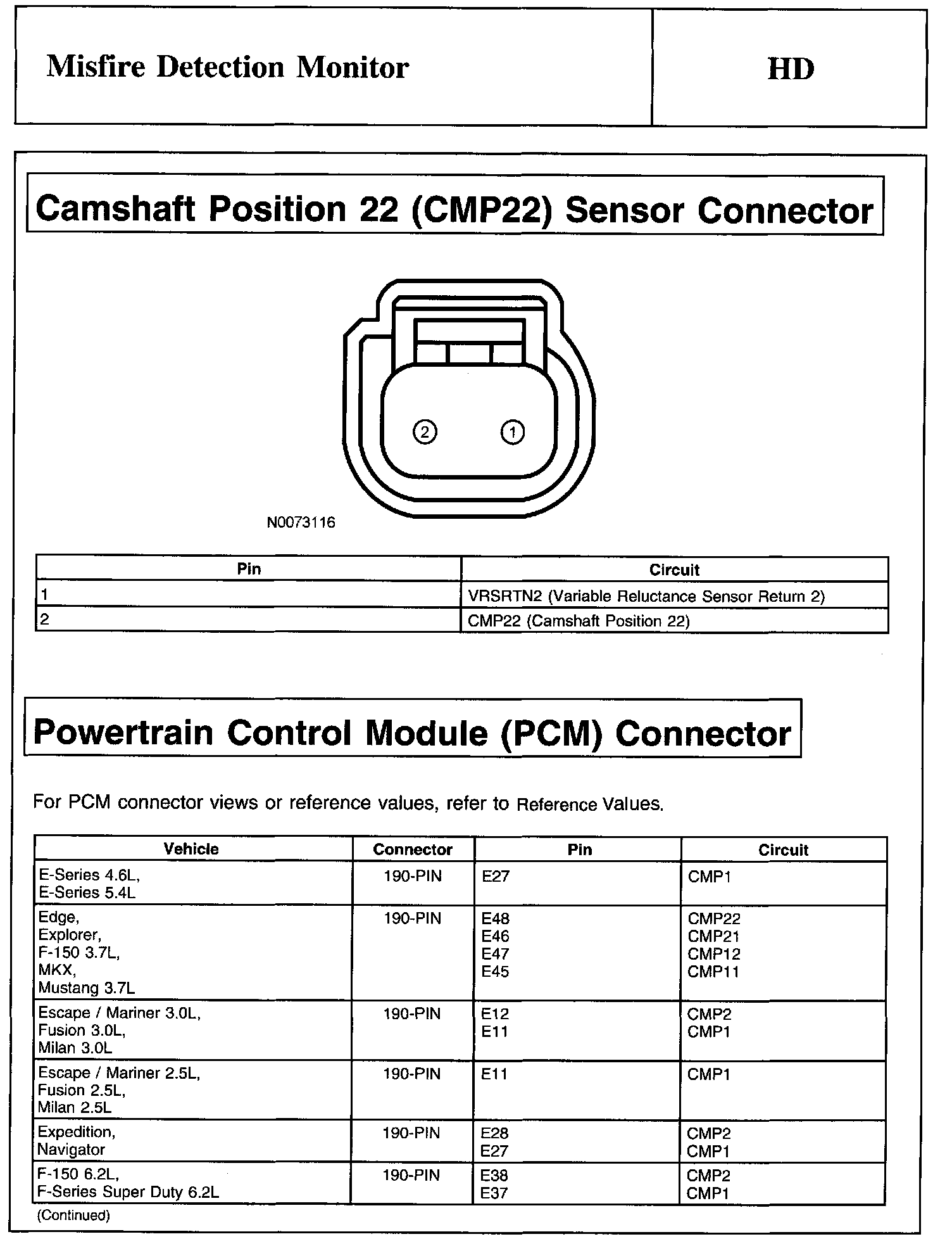 PINPOINT TEST HD: MISFIRE DETECTION MONITORWarning, Note And Camshaft Position 1 (CMP1) Sensor Connector: