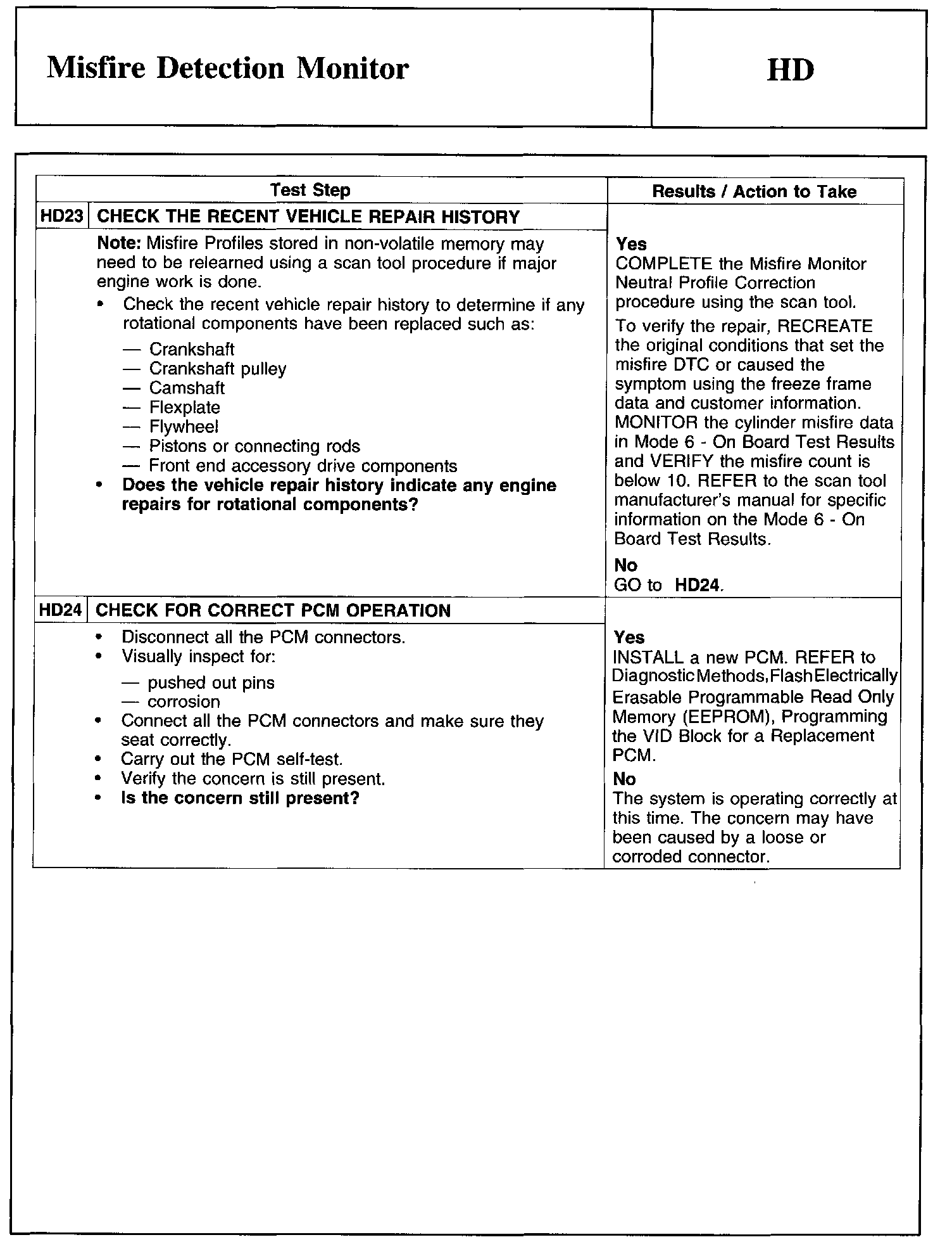 Test HD: Misfire Detection Monitor