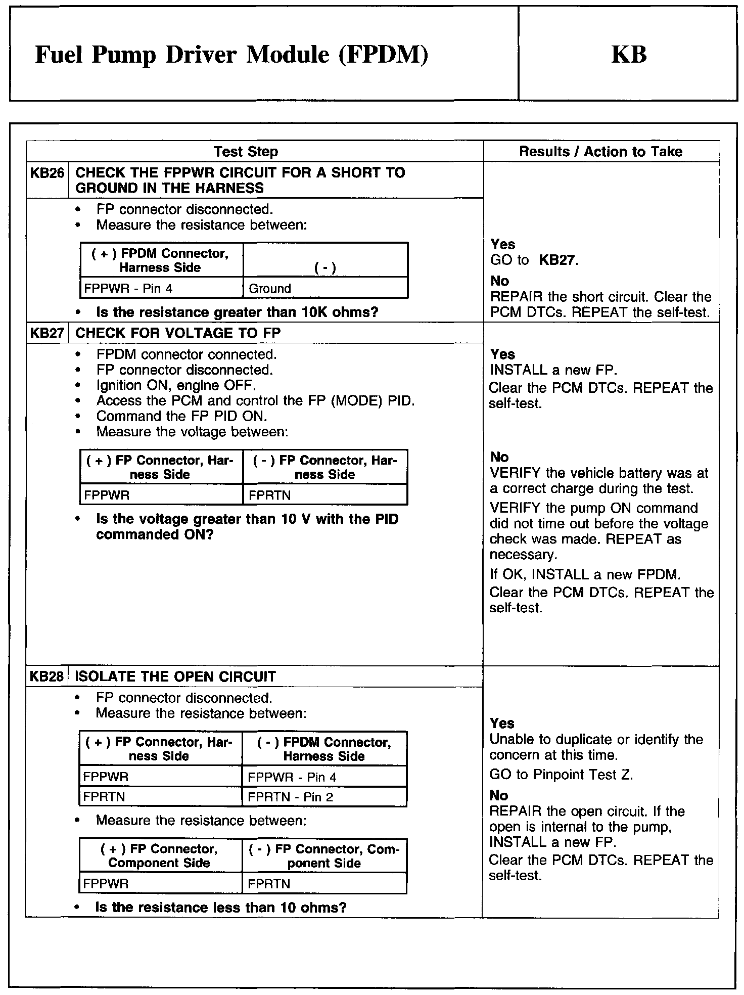 PINPOINT TEST KB: FUEL PUMP DRIVER MODULE (FPDM)